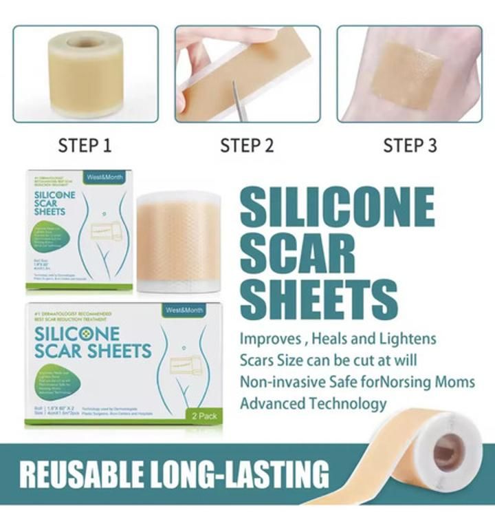 1.[Tableta de seguridad de silicona para cicatrices] contiene una composición de silicona para la reparación de cicatrices de seguridad.Esta tableta de silicona para cicatrices puede eliminar eficazmente las cicatrices.Aplicar sobre lesiones, quemaduras, queloides, arrugas y cicatrices abdominales, etc.