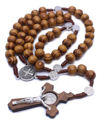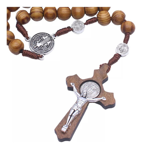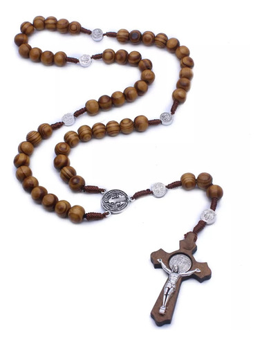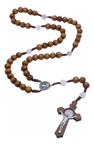 Rosario De Madera Católico Cruz Colgante
