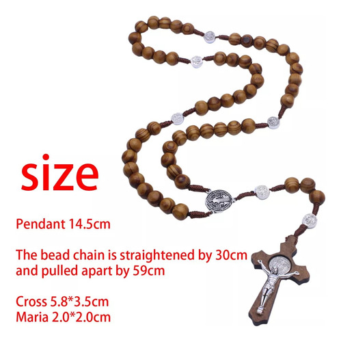 • Las cuentas del rosario están hechas a mano en madera resistente y duradera