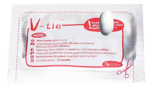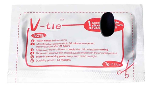 El V-Tie es un compuesto moldeable que está disponible en varios colores y viene en unas bolsitas selladas con 5 g de contenido. Si guardamos las bolsas selladas en la nevera podremos extender su tiempo de vida un poco más.
